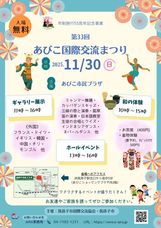 | 場 所 | あびこ市民プラザ 多目的ホール 我孫子市我孫子4-11-1 あびこショッピングプラザ3階 |