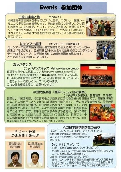 | 審査等 | 審査の基準は必ずしも語学能力ではなくスピーチの内容を重視します。 選考の上、下記の各賞及び副賞を授与いたします。 ~我孫子市国際交流協会(AIRA)会長賞、我孫子市長賞、我孫子市教育長賞、中央学院大学学長賞、川村学園女子大学学長賞他~ |